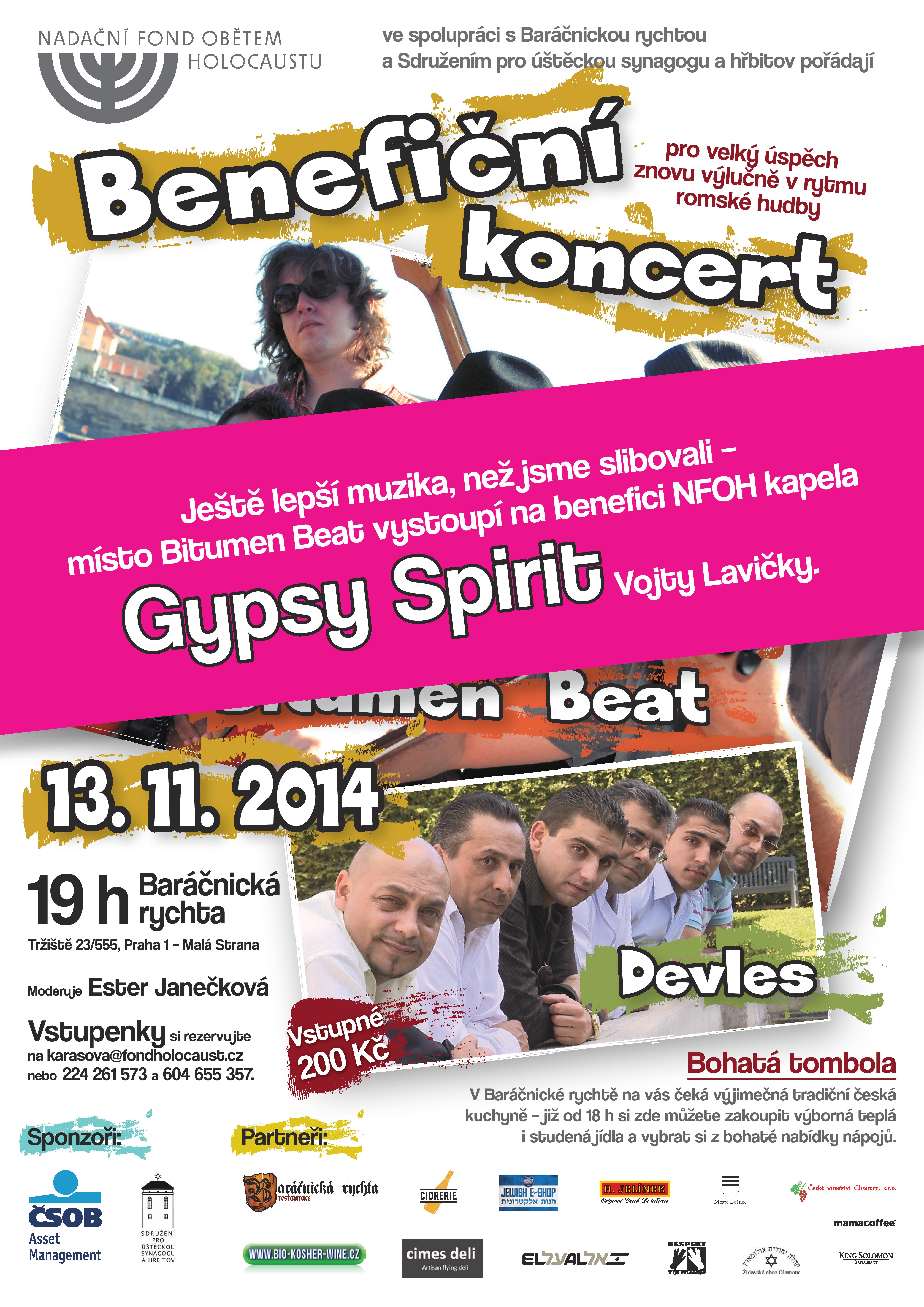 Srdečně Vás zveme na další z řady našich podzimních benefičních koncertů. Večer bude opět v rytmu romské hudby, tentokrát v podání kapel Gypsy Spirit a Devles. Moderuje Ester Janečková.