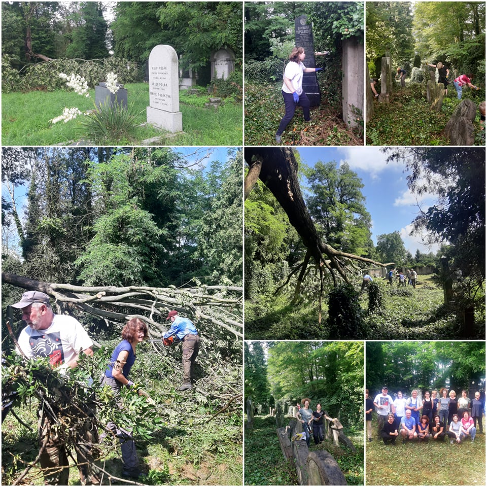 Dne 15. července 2021 jsme uspořádali naší první dobrovolnickou brigádu, a to na židovském hřbitově v Kovanicích. Dobrovolníci se nezalekli ani čerstvě spadlého stromu a s velkým nasazením vyčistili větší část hřbitova. Doprovodným úkolem bylo nalézt dosud neznámý náhrobek babičky Franze Kafky, žel se nám nezdařilo, v pátrání budeme pokračovat v příštím roce, kdy pojedeme hřbitov dočistit.
