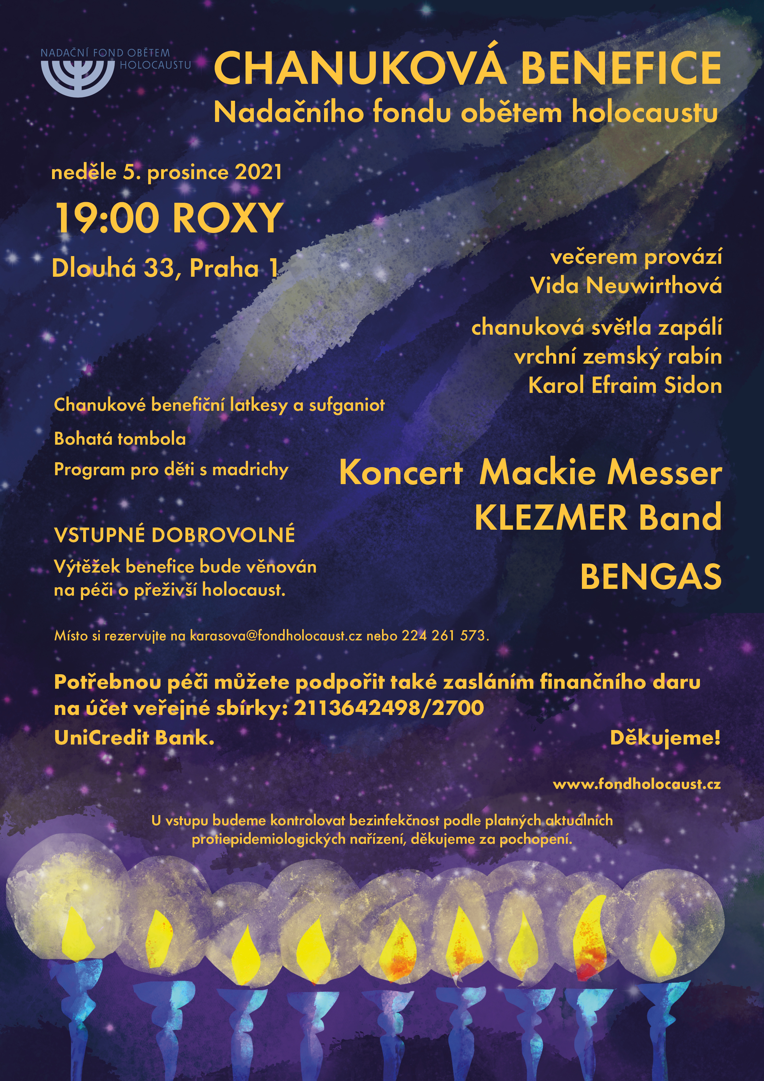 Srdečně Vás zveme na naší letošní chanukovou benefici, 5. prosince 2021 od 19 hodin v ROXY.