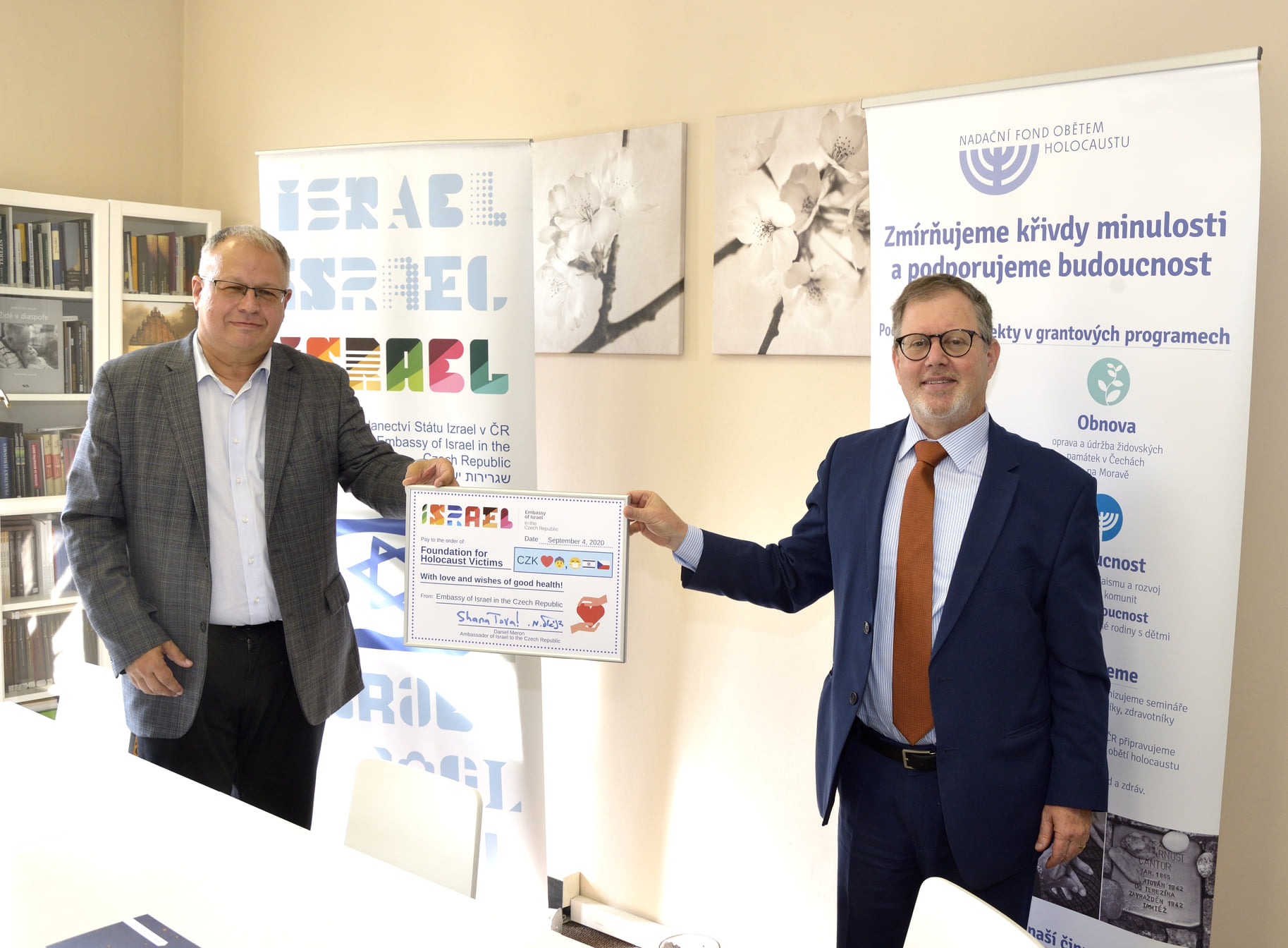 Napsal uživatel redaktor dne 15. Září 2020 - 14:03. Děkujeme J. E. Danielu Meronovi a Velvyslanectví Strátu Izrael za spolupráci na mimořádném projektu, díky kterému židovské obce získaly ochranné pomůcky potřebné pro péči o přeživší šoa. Velmi si této pomoci vážíme. Přiložené soubory: foto2.jpg foto3.jpg