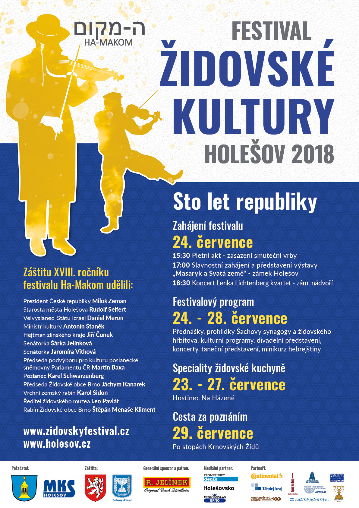 Město Holešov a Městské kulturní středisko Holešov Vás v těchto dnech zvou na XVIII. ročník Festivalu židovské kultury v Holešově. Festival nabízí velmi bohatý program a mnoho zajímavých aktivit. Více najdete v přiloženém programu.