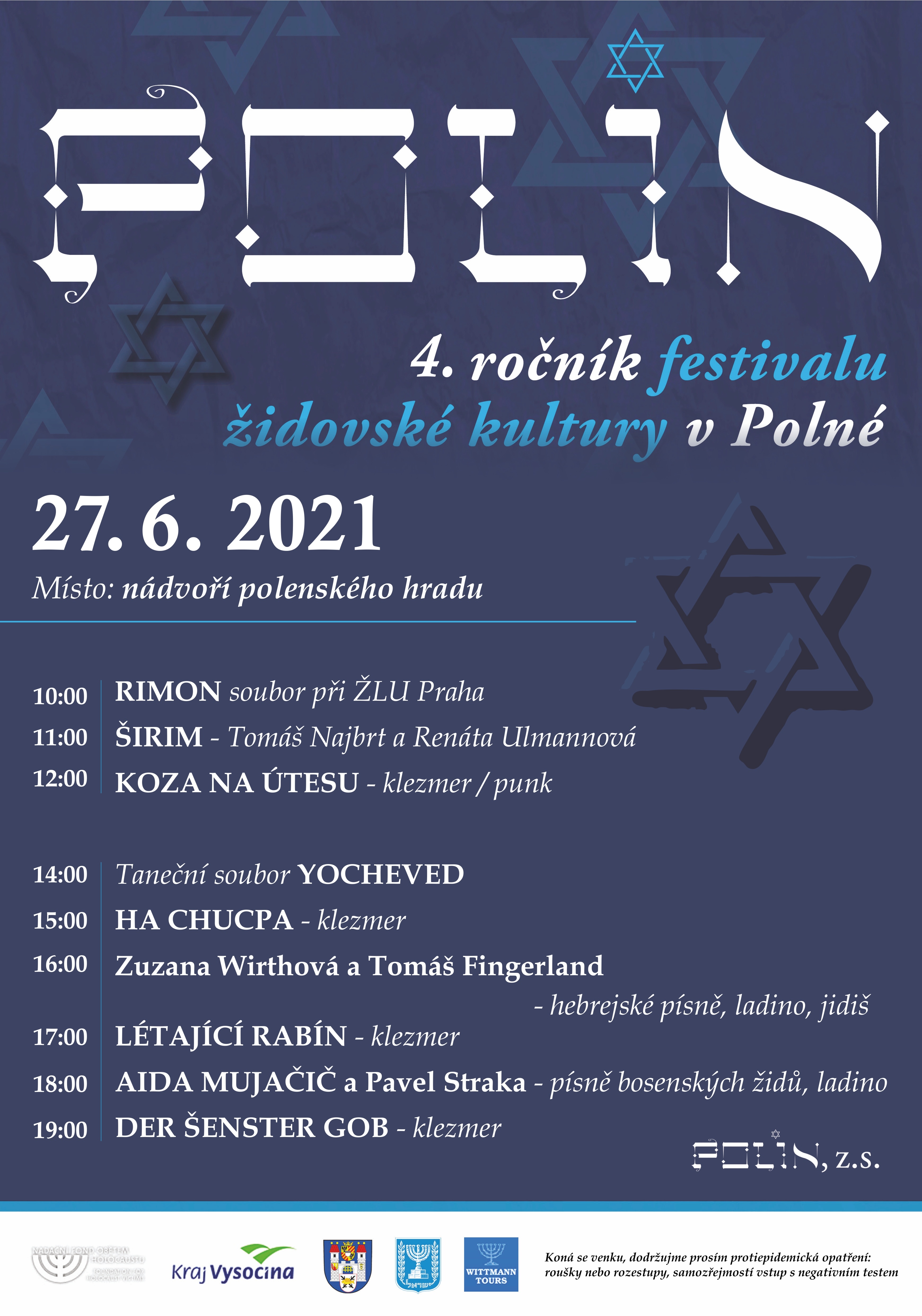 Napsal uživatel redaktor dne 27. Květen 2021 - 14:09. Spolek POLIN Vás zve na 4. ročník festivalu židovské kultury v Polné. Festival se koná 27. června 2021. Více najdete v pozvánce.