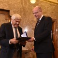 Předseda vlády Bohuslav Sobotka dnes udělil Jiřímu Bradymu pamětní medaili Karla Kramáře. Projev pana premiéra naleznete v příloze. K přítomným promluvili také pan Brady, tajemník Federace židovských obcí v ČR Tomáš Kraus a předseda pražské židovské obce Jan Munk. (foto Úřad vlády ČR)
