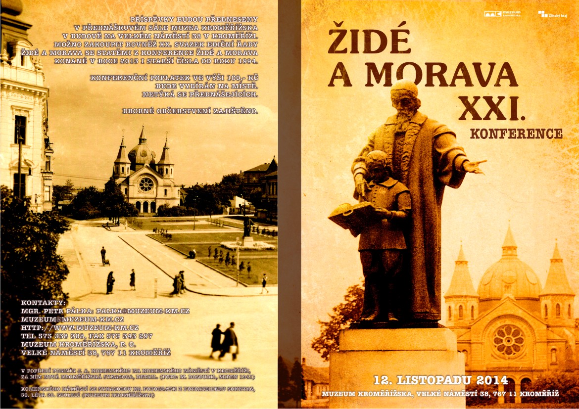 Napsal uživatel redaktor dne 3. Listopad 2014 - 16:24. Muzeum Kroměřížska Vás zve na XXI. ročník konference Židé a Morava, která se uskuteční v prostorách muzea ve středu 12. listopadu 2014. Přiložené soubory: zide_obalka_xxi.jpg English
