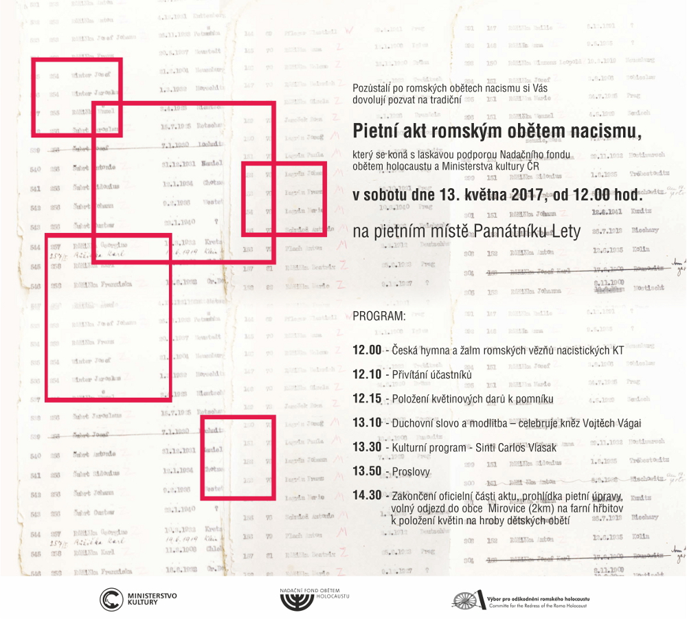 Výbor pro odškodnění romského holocaustu Vás zve na pietní akt do Let u Písku dne 13. května 2017 na místo, které je spojeno s tragickým osudem původních českých Romů a Sintů. Více informací naleznete v příloze.