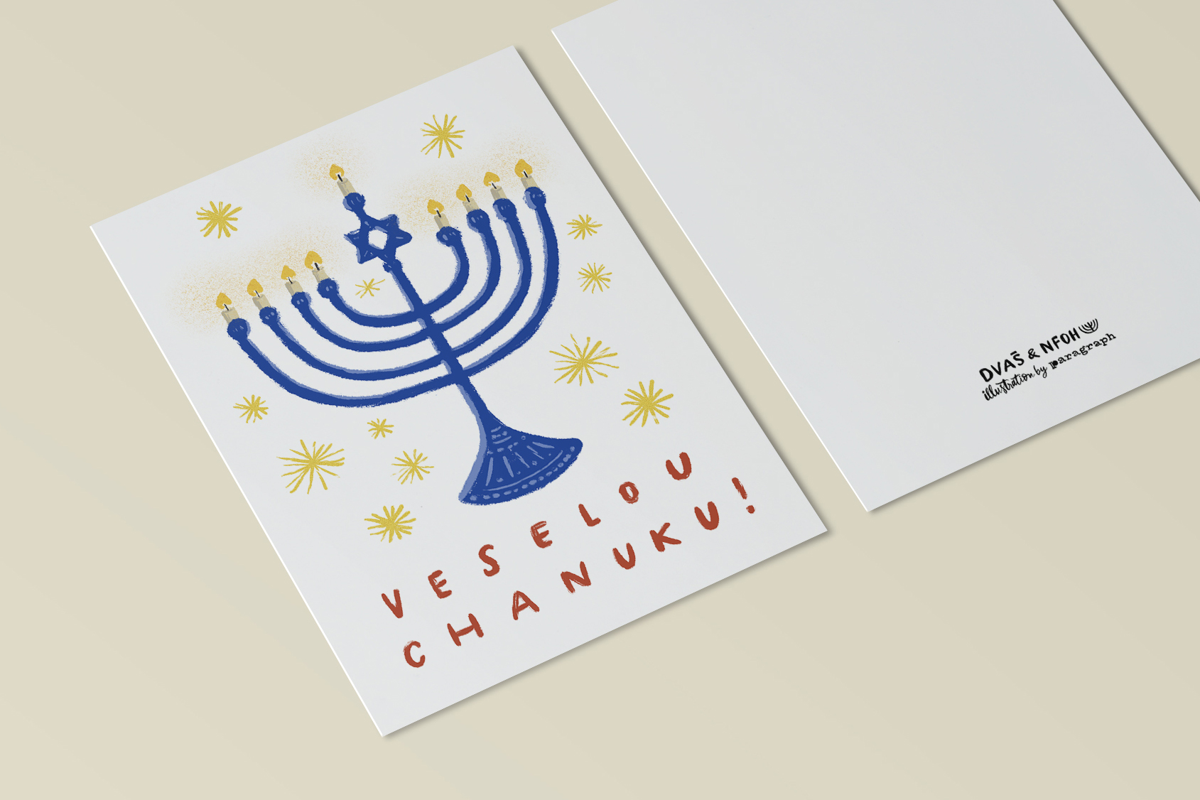 Posíláte sváteční přání? My ano, zvláště v této době. Ve spolupráci se zavedeným papírenským studiem Paragraph a nově vznikající značkou designované judaiky DVAŠ design jsme připravili sérii 3 svátečních kartiček. Zakoupením přání podpoříte péči o přeživší šoa. Cena sady je 200 Kč, je možné si objednat i pouze 3 chanuková přání. Objednávky posílejte na email: karasova@fondholocaust.cz. Neváhejte, počet je limitován. Děkujeme a přejeme Chanuka sameach!