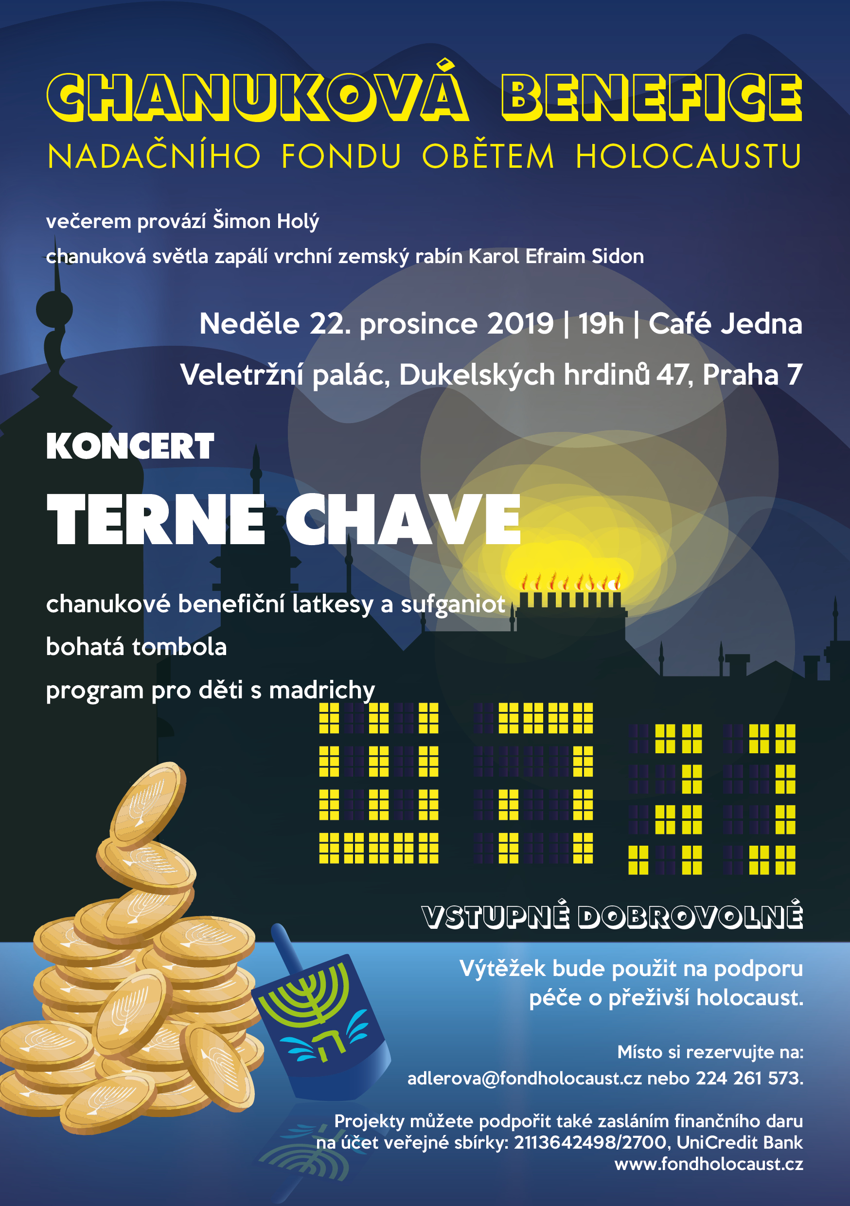 Srdečně Vás zveme na tradiční benefiční koncert Nadačního fondu obětem holocaustu, který je letos opět spojen s oslavou chanuky!