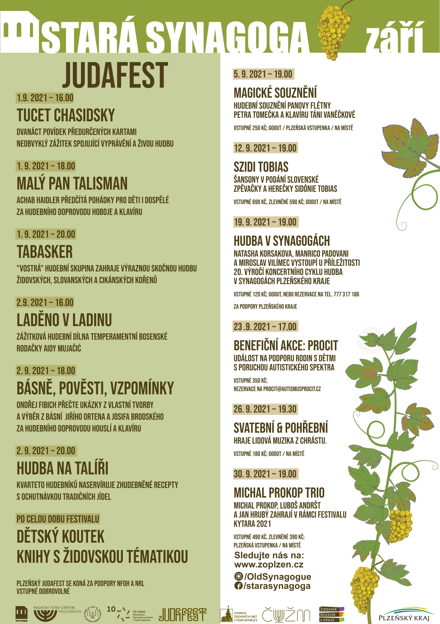 Napsal uživatel redaktor dne 23. Srpen 2021 - 11:57. Židovská obec v Plzni Vás zve, tentorkát v rámci festivalu židovské kultury Judafest, který pořádá Česká unie židovské mládeže, na koncerty a další kulturní aktivity. Festival se koná začátkem září.