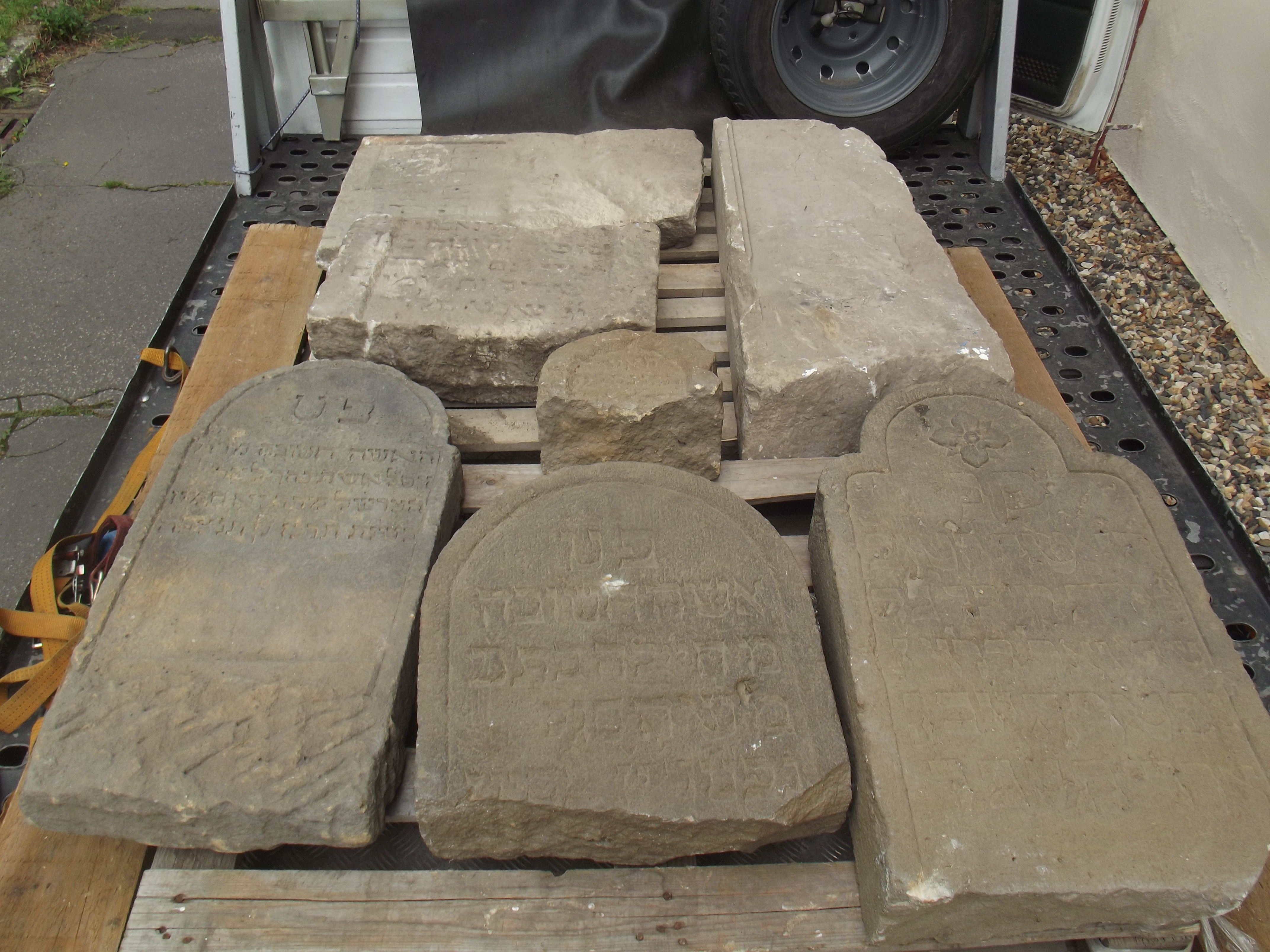 Židovská obec Teplice převezla toto úterý náhrobní kameny z Oblastního muzea v Chomutově, které pocházejí ze starého židovského hřbitova v Údlicích a do muzea byly uloženy v devadesátých letech 20. století. Náhrobní kameny byly převezeny na nový židovský hřbitov v Údlicích, kde vznikne lapidárium, pietní místo na památku údlických Židů. Ve stejný den byly též vyzvednuty fragmenty židovských náhrobků ve Staré čtvrti v Údlicích a převezeny tamtéž. Přesun náhrobků probíhal za naší finanční podpory, pod dozorem duchovního teplické obce pana Tomáše Pulce. Děkujeme.