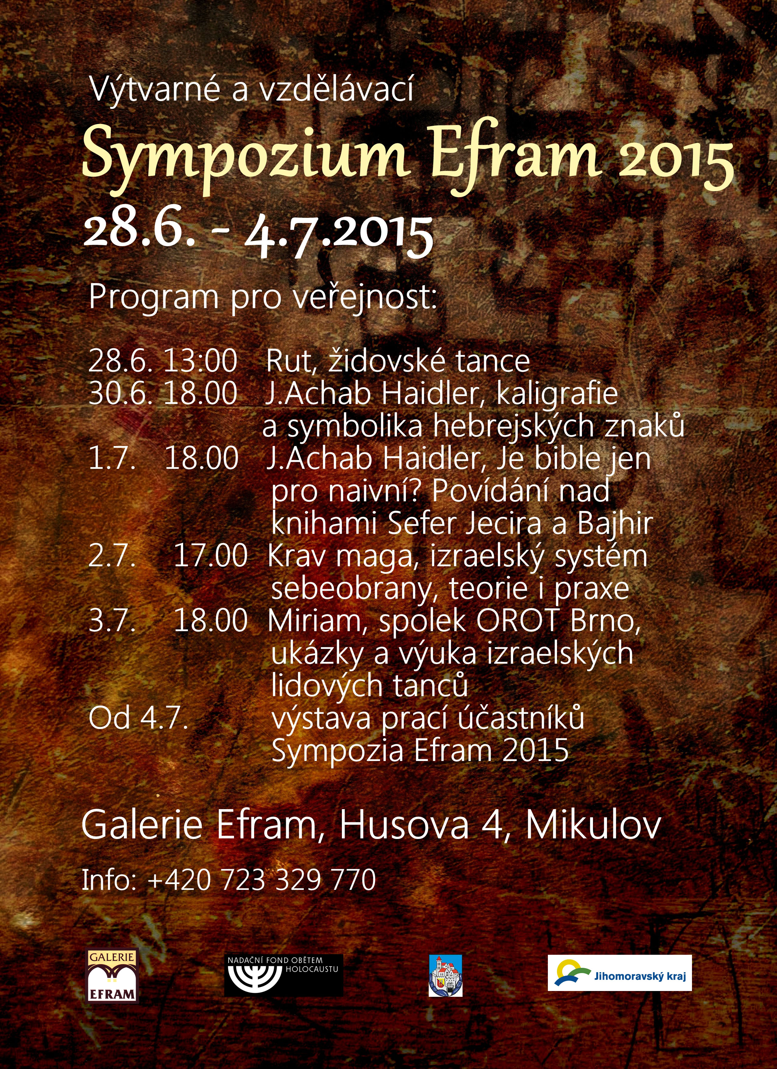 Napsal uživatel redaktor dne 22. Červen 2015 - 11:06. Galerie Efram v Mikulově Vás zve na letošní sympozium. To se bude konat ve dnech 28. 6. - 4. 7. 2015. Informace o programu najdete v příloze. Přiložené soubory: sympozium_efram.jpg