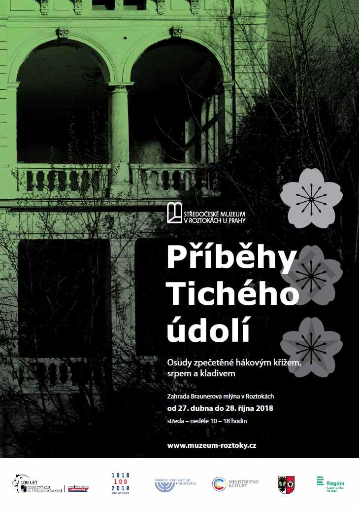 Středočeské muzeum v Roztokách Vás zve na výstavu Příběhy Tichého údolí - Osudy zapečetěné hákovým křížem, srpem a kladivem. Výstava přibližuje nejen architektonické prvky letních vil v Tichém údolí Únětického potoka v Roztokách, ale mapuje osudy zejména židovských stavitelů, podnikatelů a jejich rodin, kteří vily vybudovali a obývali až do doby nástupu nacsimu, kdy byla většina obyvatel deportována do koncentračních táborů. Vily byly zabaveny Německou říší a posléze využívány komunistickým režimem. Výstava bude otevřena od 27. dubna - 28. října 2018. Vernisáž výstavy se koná 26. dubna 2018 v 16:30 v Zahradě Braunerova mlýna, Riegrova ul. 5, Roztoky.