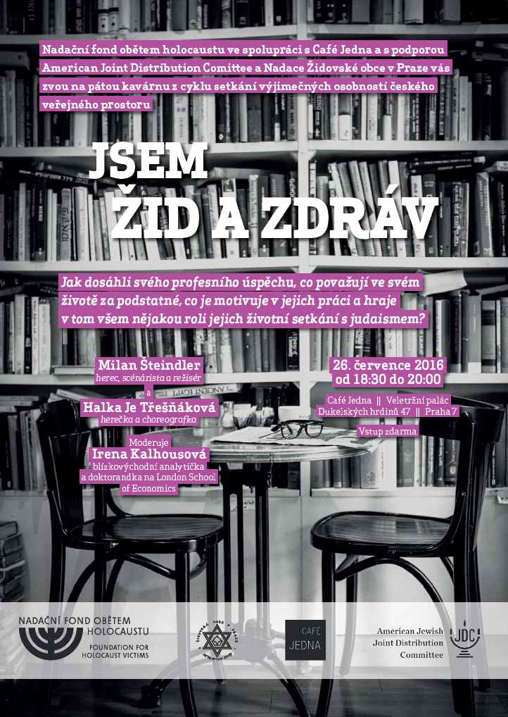 We would like to invite you to our next café session - part of the series "I am Jewish and I prosper." Our guests this time are a director and actor Milan Šteindler and an actress and choreographer Halka Je Třešňáková. The café session will take place on Tuesday 26 July 2016 from 6:30pm to 8:00pm in Café Jedna in Veletržní Palác in Prague. The session will traditionally be moderated by Irena Kalhousová. We are looking forward to seeing you!