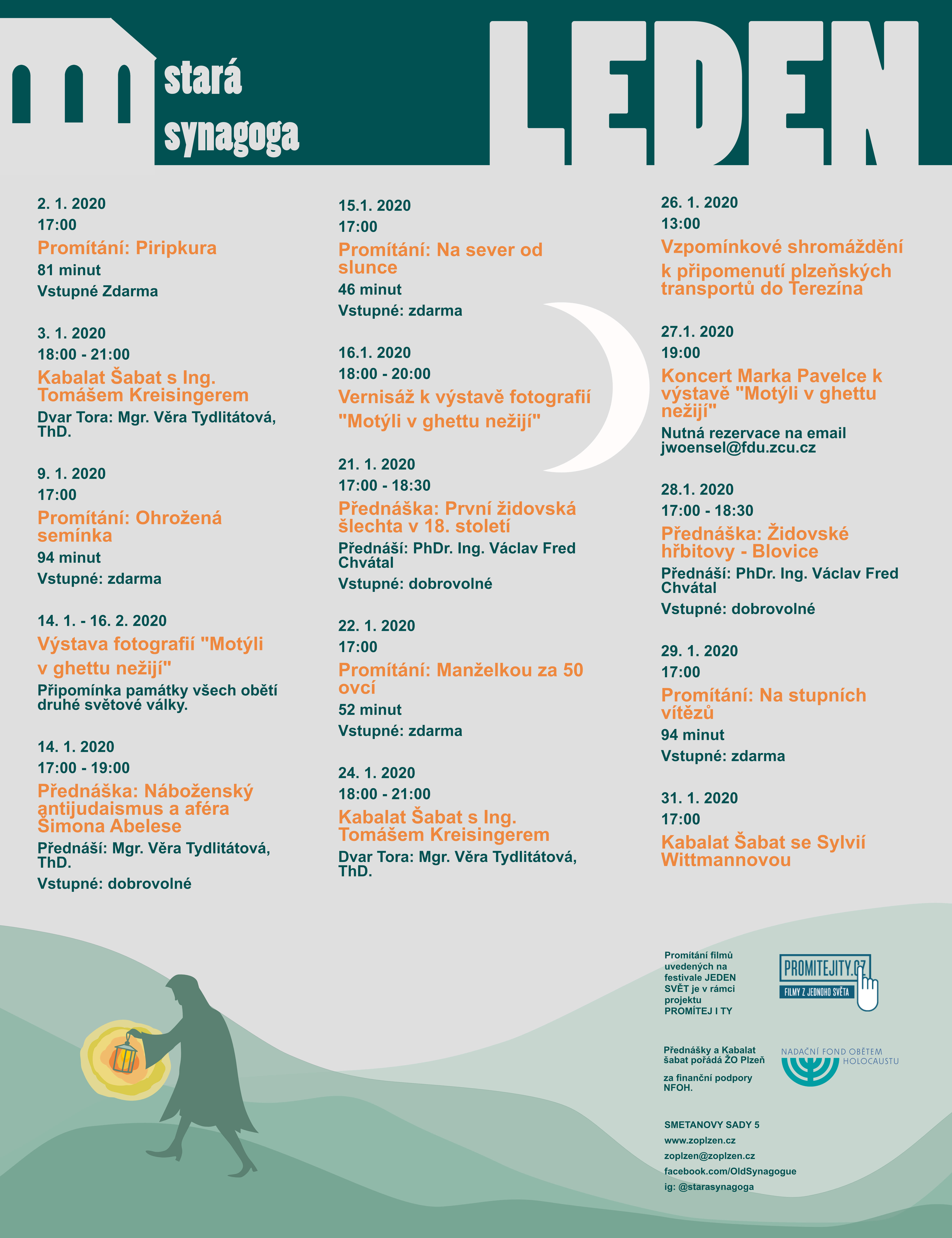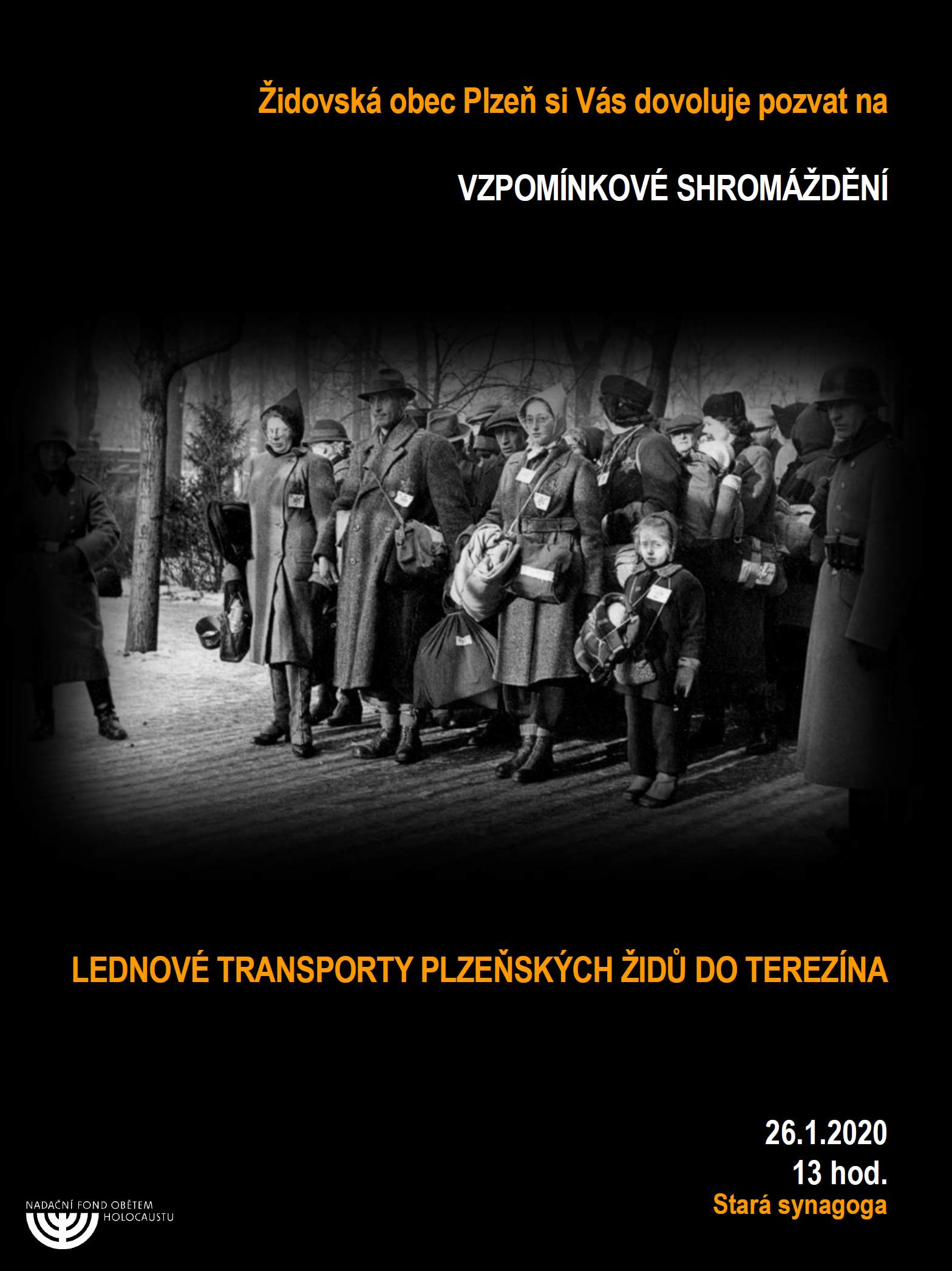 The Pilsen Jewish Community would like to invite you to a commemorative meeting on the occasion of the anniversary of January transports of the Jewish citizens of Pilsen to Terezin concentration camp. The meeting will be held on 26 January 2020, at 1pm. Pilsen will also host several thematic lectures throughout the month of January. For more information we would refer you to the attached Program.