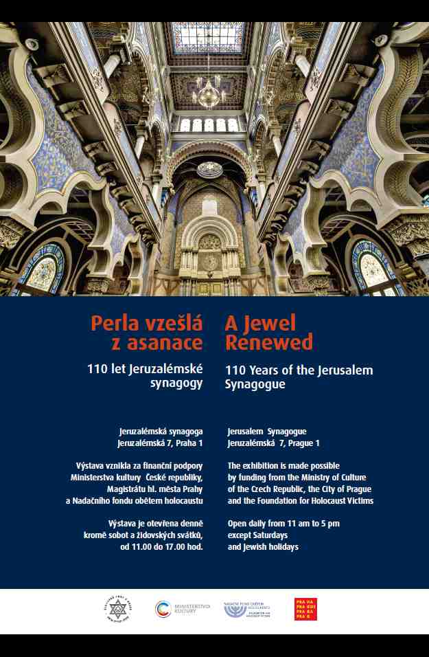 Prague Jewish Community would like to invite you to an exhibition called “Perla vzešlá z asanace - 110 let Jeruzalémské synagogy“ (The Pearl Emerged from the Restoration – 110 Years of the Jerusalem Synagogue). For more information please refer to our invitation attached.