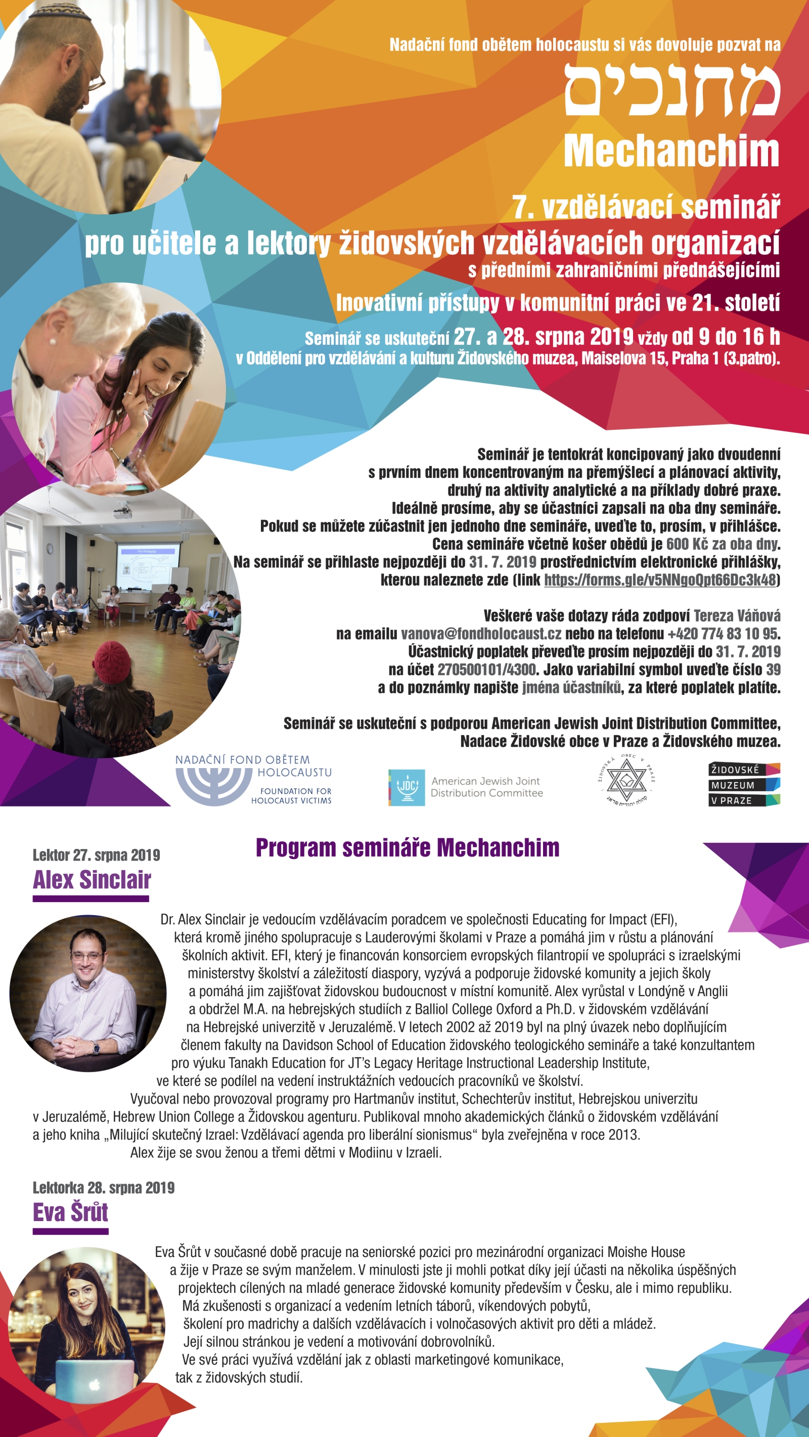 We cordially invite everyone who works in the area of Jewish education to participate at another year of our Mechanchin seminar – the topic of the seminar will be "Innovative approaches in community care in the 21st century". See the attached invitation to find more information on the event. Enrollment by means of the electronic questionnaire could be performed here.